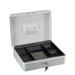 Geldkassette zum Verschließen von Bargeld, Schmuck, wichtigen Papieren oder anderen Wertsachen. Der Griff liegt im Deckel der Geldkassette ein, sodass sie gut in Schränken oder Schubladen verstaut werden kann. In dem innenliegenden Einsatz können die Wertsachen übersichtlich sortiert werden.